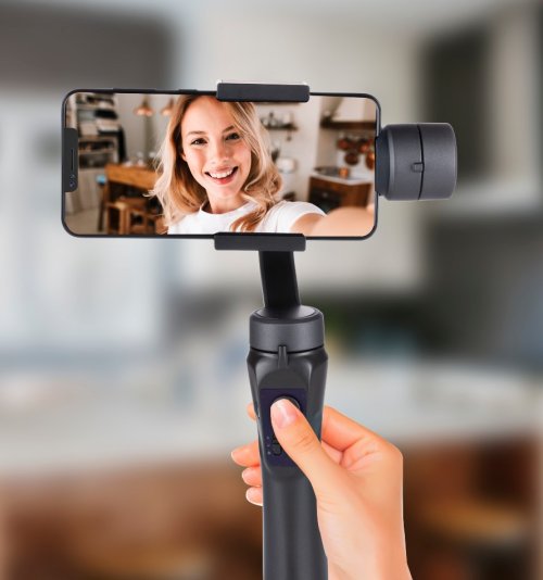 Nenahraditelné zařízení pro sportovní akční filmy, legrační houštiny, záznamy na YouTube, delay filmy, časosběr, panoramatické fotografie, přechody a další dynamické záznamy. Tento kardanový stabilizátor Grundig udržuje váš telefon ve správné poloze bez ohledu na to, jaké pohyby děláte. Stabilizátor lze nabíjet přiloženým Micro USB kabelem.Grip pasuje na smartphony o šířce 58 až 100 milimetrů. Sada obsahuje mini stativ, takže si můžete sami filtrovat a zvěčnit všechny druhy scén. Smartphone lze používat vertikálně i horizontálně a lze jej otáčet o 360 stupňů. Velký joystick uprostřed znamená, že gimbal lze snadno a rychle ovládat jednou rukou. Automaticky se nastavuje nahoře/dole/vpravo/vpravo. Stabilizátor má 3 úrovně nastavení: pevný (zamčený), poloviční pohyb (poloviční následování) nebo plný pohyb (úplný pohyb). Připojíte jej k Bluetooth, takže můžete ovládat vytváření filmů a fotografií.Vlastnosti:- Gimbal stabilizátor pro profesionální fotografování- 360 stupňů rotace- 3 osy- Rukojeť pro smartphony od 58 ... 100 mm- Rychlá manuální regulace- Automatické nastavení shora, zdola, vlevo, vpravo- vertikální Zvedání pomocí gest rukou- One- návrat klíče do výchozí polohy-Režim scény: blokáda, semi -sekvence- Funkce Bluetooth- Funkce nabíjení USB