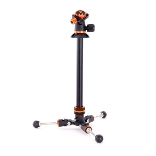 S plně vysunutelným středovým sloupcem prodloužíte tripod až do pracovní výšky 166 cm, přičemž si uchová schopnost sklopení dolů do minimální 11,8cm pracovní výšky či do skladné délky 45,7 cm. Stativová základna vám umožní rychlé a přesné nastavení roviny snímku při natáčení videa nebo fotografování na šířku. Tření základny je řízeno D-kroužkem na její spodní straně, který navíc umožní připevnění závaží k nohám pro zvýšení stability. Tvarovaná deska obsahuje 3 duté ostrohy pro připojení popruhu, otvíráku, karabiny či nástroje 3LT Toolz, který je součástí dodávky.