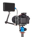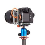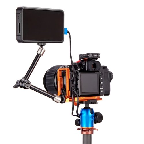 Připojte monitor nebo třeba mikrofon pomocí dvojitého upevňovacího bodu 1/4"-20 a 3/8"-16, který umožní spojení vašeho příslušenství s kamerou. K bočním portům se dostanete otevřenou stranou držáku. Zároveň budete mít snadný přístup k baterii a k paměťové kartě. Perfektně tvarované Arca-Swiss destičky se bezpečně upevní k hlavě stativu a drží na místě. Na stativu najdete i drážku pro připevnění popruhu nebo kotvy pro praktické přenášení.
