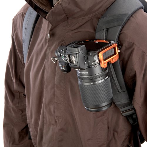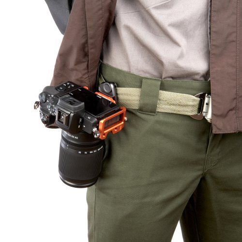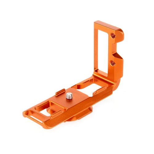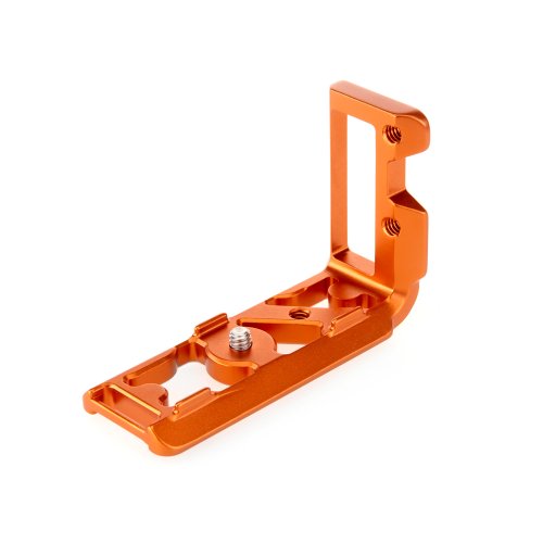 Délka držáku činí 100 mm a zadní hrana základny je zkosená pro lepší přístup k výklopnému displeji a k dalším důležitým funkcím fotoaparátu. Svislá součást je obrobena tak, aby neblokovala porty či bateriová dvířka fotoaparátu, a navíc může být namontována naopak, aby bylo možné připojit kabely z pravé nebo levé strany. Zároveň k destičce můžete připnout popruh, a to pomocí 1/4″ závitu nebo integrovaného očka.