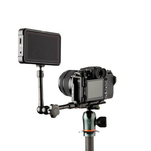Délka držáku činí 106 mm a zadní hrana základny je zkosená pro lepší přístup k výklopnému displeji a k dalším důležitým funkcím fotoaparátu. Svislá součást je obrobena tak, aby neblokovala porty, paměťové sloty či bateriová dvířka fotoaparátu, a navíc může být namontována naopak, aby bylo možné připojit kabely z pravé nebo levé strany. Zároveň k destičce můžete připnout popruh, a to pomocí 1/4″ závitu nebo integrovaného očka.