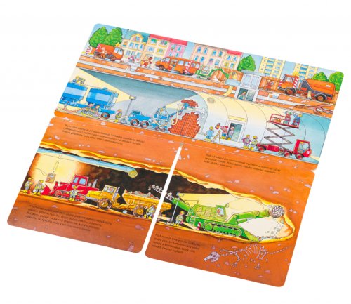V této knížce navštívíte stavbu výškové budovy nového hotelu, zúčastníte se prací na stavbě mostu přes řeku a podíváte se hluboko pod zem, jak vzniká tunel metra. Tak hurá na stavbu!