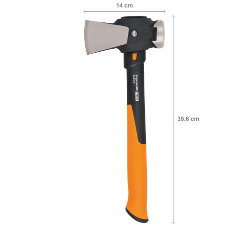 Sekera je ideální pro štípání malých polen a podpalovačů, zatímco hnací stranu lze použít jako úderovou plochu nebo k zatloukání kůlů. Přenáší o 50 % méně nárazů a vibrací než kladiva s dřevěnou rukojetí, čímž snižuje zátěž vašeho těla. Kovaná, tepelně zpracovaná ocelová hlava je opatřena nerezavějící povrchovou úpravou. Na hnací plochu lze při štípání udeřit jiným nástrojem, který pomáhá vytlačit klín. Tvarovaná rukojeť SoftGrip nabízí přirozené držení a je opatřena vroubkováním, díky němuž nástroj pevně drží v ruce. Délka 36 cm, hmotnost: 1,2 kg.