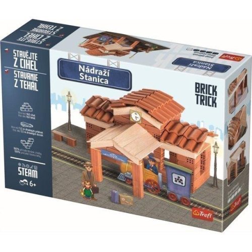 Staňte se stavitelem a vybudujte ze skutečných hliněných cihel a dřeva svoje vlastní vlakové nádraží! Skládejte cihlu za cihlou, řežte a lepte prkénka, postupujte od základů až po dokončenou budovu a nakonec svůj výtvor ozdobte přiloženými dekoracemi. Stavte krok za krokem podle návodu nebo najděte a zrealizujte své vlastní řešení. Oživte svou dokončenou stavbu papírovými figurkami. Pokud spojíte několik sad TREFL Brick Trick, můžete vytvořit malebnou vesničku, moderní město nebo středověkou osadu. Stavebnici lze používat opakovaně (lepidlo je rozpustitelné vodou). Úroveň obtížnosti: 4,5 Balení obsahuje: - více než 160 přírodních hliněných cihliček - více než 5,5 m dřevěných prkének - základovou desku - obrázkový návod - papírové figurky - dekorační doplňky - lepidlo Stavebnice Brick Trick od výrobce TREFL zlepšují manuální dovednosti, rozvíjí představivost a podporují soustředění. Vhodné pro děti od 6 let. Vyrobeno v EU.