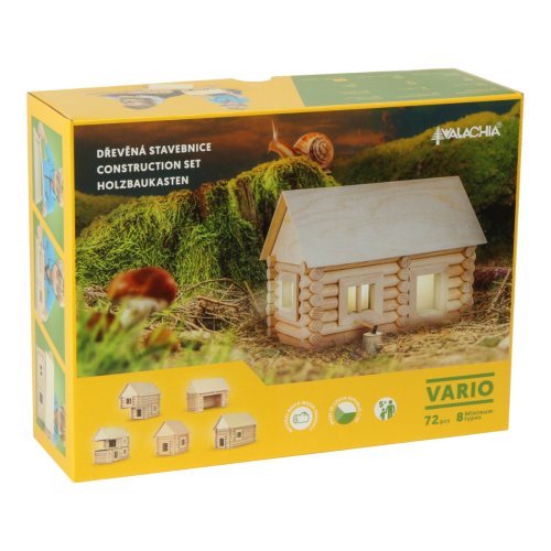 Stavebnice z masivního bukového dřeva ( průměr 15 mm ). Lze ji skládat i rozkládat. Z této stavebnice postavíte mnoho variant staveb. Počet dílů 72. Vhodné pro děti od 5 let.