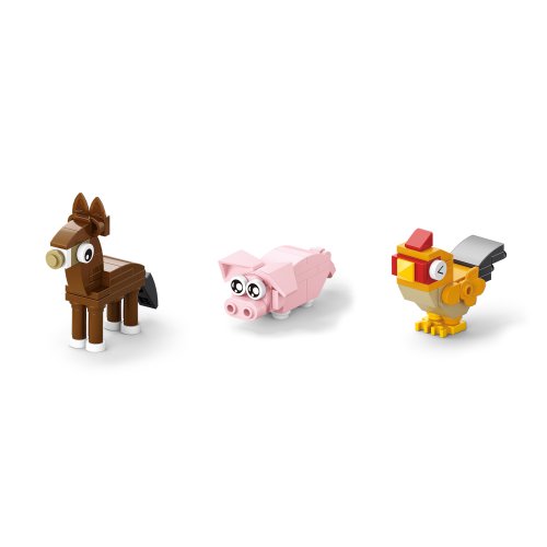 Vítejte na farmě plné zábavy! Z této kreativní stavebnice lze sestavit až 12 různých druhů farmářských zvířátek, takže si děti mohou vytvořit vlastní hospodářství a pokaždé postavit jiné zvířátko. Stavebnice je doporučena pro děti od 6 let a nabízí hodiny smysluplné zábavy při stavění i následné hře na farmu. Díky kompatibilitě s jinými stavebnicemi nabízí neomezené možnosti kombinací a rozšiřování.
