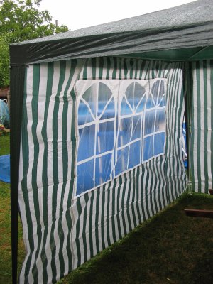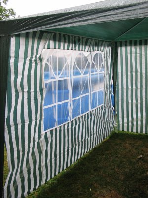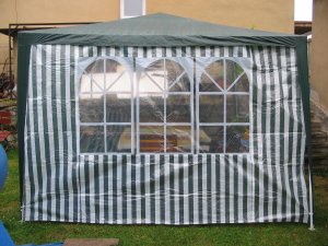 Bočnice stanu s oknem - bílo zelené pruhy Bočnice jsou vhodné k altán párty stanům 3 x 3 m.