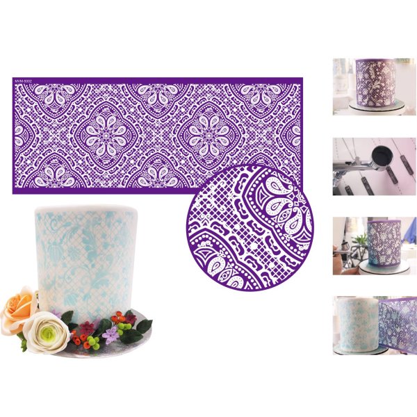 Stencil šablona na dort na výrobu dekorace v podobě jedlé krajky.