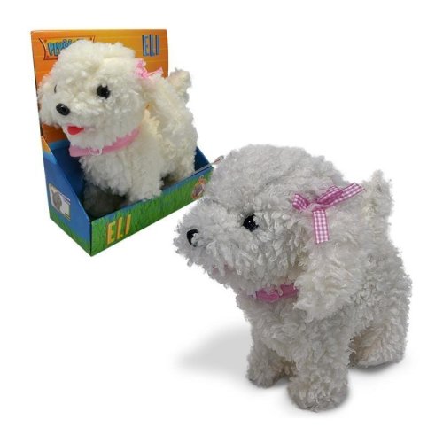 Interaktivní štěňátko s dotykovým sensorem, který má umístěný na hlavě. Funkce: Vytáhni pojistku ze zásobníku pro baterie. Přepni vypínač ON/OFF do polohy ON (zapnuto) a aktivuj funkce stiskem tlačítka senzoru (po určitém čase se funkce automaticky ukončí, proto dané tlačítko stiskni znovu) Tvé štěňátko začne štěkat, kňučet a přitom chodit! Stiskni jeho hlavu nebo ho zvedni, natoč tlamičkou proti sobě, aby vyplázlo svůj jazýček a zavrtělo ocáskem!. Ošetření látky: ruční čištění navlhčeným hadříkem ve vlažné, čisté nebo mýdlové vodě. Výrobek na baterie: Použijte 3× baterie „AA“ 1,5V. Baterie jsou součástí hračky – pouze pro zkušební provoz.