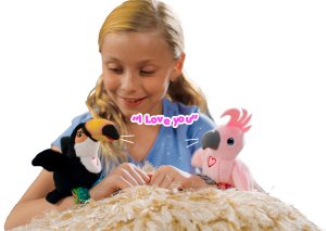 Ptáčka si můžeš připnout na ruku a užít si s ním spoustu zábavy. Opakuje, zpívá ptáčí písničku a mává křídly.