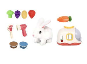 Dobroty: Součástí jsou i plastové kousky ovoce a zeleniny, kterými můžete králíčka "krmit".