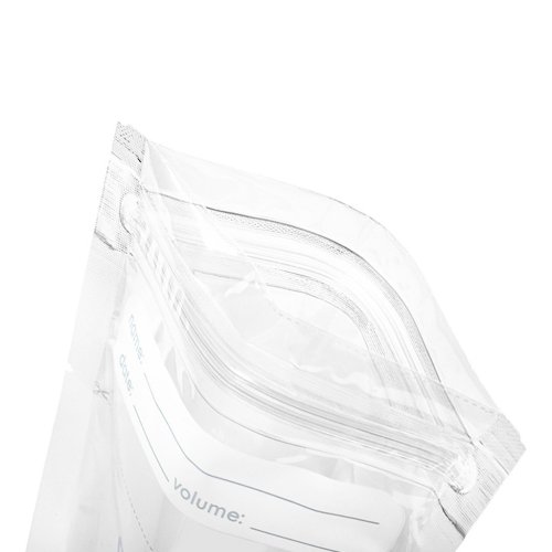 Jednorázové sterilní sáčky se používají k uchovávání potravin a mléka v chladničce nebo mrazničce. Splňují nejvyšší hygienické normy. Stabilní základna sáčku usnadňuje skladování vertikálně a chrání jídlo před únikem. Dvojitý uzávěr na zip umožňuje snadné otevírání a zajištění bezpečnosti skladovaných potravin a zároveň ochranu proti pronikání pachů. Díky odměrce na sáčku můžete přesně změřit množství jídla a na bílý štítek umístěný na sáčku napsat poznámku o datu, čase a množství odsátého mléka.