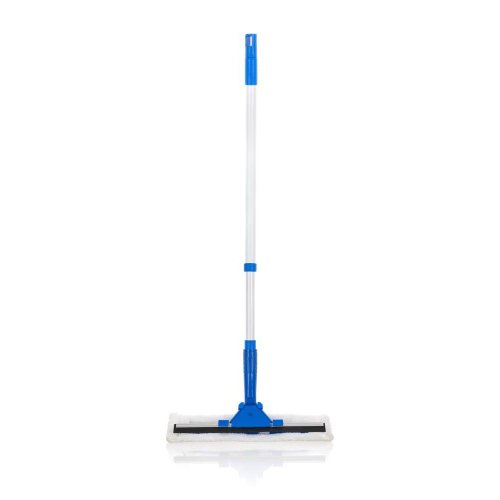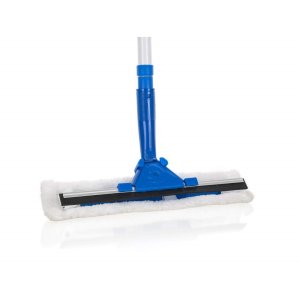šířka stěrky: 25 cm délka tyče: 75 - 150 cm materiál: mikrovlákno (80 % polyester, 20 % polyamid), guma barva: modrá stěrka, bílé mikrovlákno