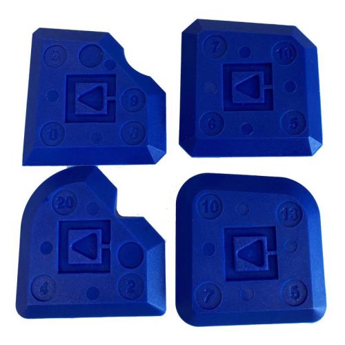 Sada čtyř gumových stěrek Určeno k aplikaci a vyhlazení čerstvé silikonové nebo akrylové hmoty Stěrky mají hroty různých šířek odpovídajících šířkám různých spár a hrany zkosené v různých úhlech Stěrka …