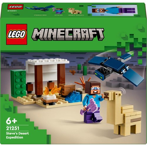 Tato stavebnice LEGO® Minecraft® pro malé stavitele od 6 let je zcela první sada s biomem pouště ze světa Minecraftu. Steve a výprava do pouště (21251) děti inspiruje k postavení domku v nehostinném prostředí, který poté musí ubránit před létajícím Přízrakem.