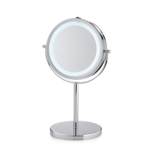 Pochromovaný kov 1x/10x zvětšovací LED světlo, zapnutí/vypnutí 21x13,5cm, 33cm h zrcátko 13cm