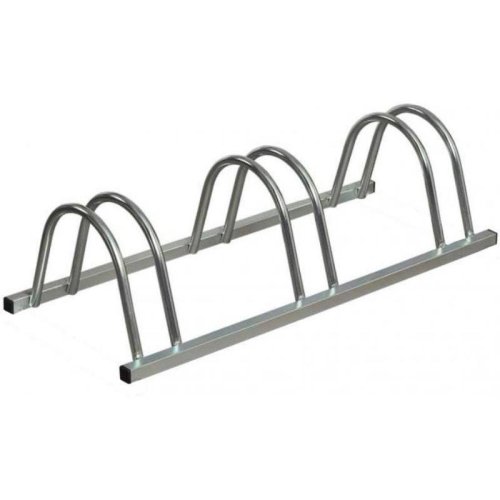 stojan pro 3 kola svařovaný z ocelových profilů a trubek upraven galvanickým zinkem podélný rám z profilů 25 x 25 mm oblouky ohýbané z trubek průměru 18 mm galvanicky pokoveno pro vysokou korozní odolnost …