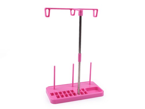 Stojan k šicímu stroji se zásobníkem na cívky je určený pro odvíjení nití až ze 3 velkých cívek, které se nevejdou do držáku stroje - jednoduše ho vedle stroje postavíte. Je vhodný pro všechny typy šicích strojů. Stojánek má přihrádky na uložení 15 ks cívek a malou přihrádku na krejčovské potřeby velkou 4,5 x 5,8 cm. Součástí balení je fotonávod na složení stojánku.