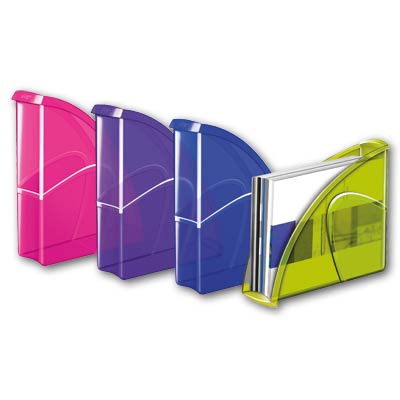 Stojan na časopisy v originálním designu a atraktivních barvách Snížený okraj (2,0 cm) pro snadný přístup k dokumentům Lze používat horizontálně i vertikálně Rozměry: 8,5 × 31,0 × 27,0 cm (š × v × h)