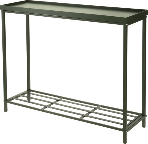 regál se dvěma policemi vhodný do interiéru i exteriéru- ideální jako stojan na bylinky, květiny nebo multifunkční police na zahradu, balkón i do bytu- vyrobený z kovu s práškovým nástřikem- tento ochranný nástřik je odolný proti korozi a zajišťuje dlouhou životnost- pevná konstrukce na čtyřech nohách stojí stabilně a neviklá se- dvě prostorné police- rozměry: 75 x 23 x výška 60 cm- barva: matná zelená- značka: PROGARDEN