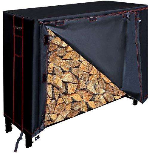 Stojan na palivové dříví 122 x 36 x 122 cm, ČER, s plachtou.