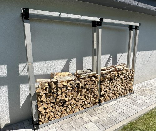 Stojan na štípané palivové dřevo je určený pro dobré prosychání dřeva, konstrukce je vyrobena s přáškovou povrchovou úpravou. Dřevěné spojnice a bočnice jsou pouze ilustrační, nejsou součástí zboží.