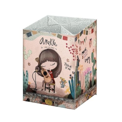 Vyrobeno z kvalitní lepenky potažené laminem. Slouží k uskladnění psacích a kancelářských potřeb. Rozměry: 80 × 75 × 105 mm.