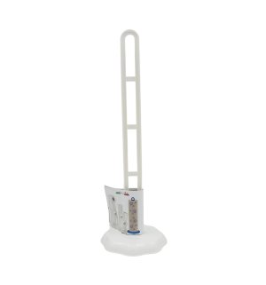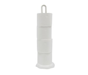 Stojan na toaletní papír slouží zároveň i jako zásobník.