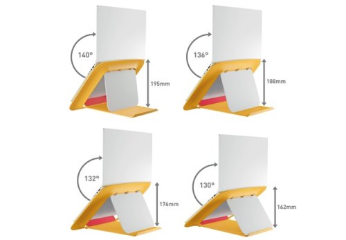 • Víceúhlý stojan na notebook Leitz Ergo zvedá obrazovku notebooku do ideální ergonomické výšky, čímž zvyšuje pohodlí při sledování a pomáhá zlepšit držení těla
