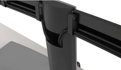 Elegantní pracovní stanice bez nepořádku Pečlivě navržený stojan má výbavu pro kabeláž, díky níž lze kabely elegantně skrýt. Uspořádejte kabely a protáhněte je skrze kruhový slot pro kabeláž ve stojanu. Kabelové úchytky podél zakřivené tyče umožňuji elegantně skrýt všechny kabely.