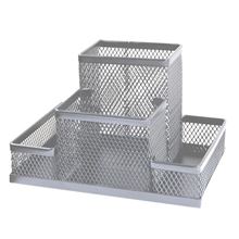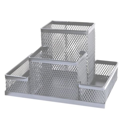 Drátěný stojánek CONCORDE ve stříbrné barvě Organizér se čtyřmi přihrádkami na psací a kancelářské potřeby Praktický doplněk na kancelářský stůl Šířka 15,5cm, výška 10 cm, hloubka 10 cm