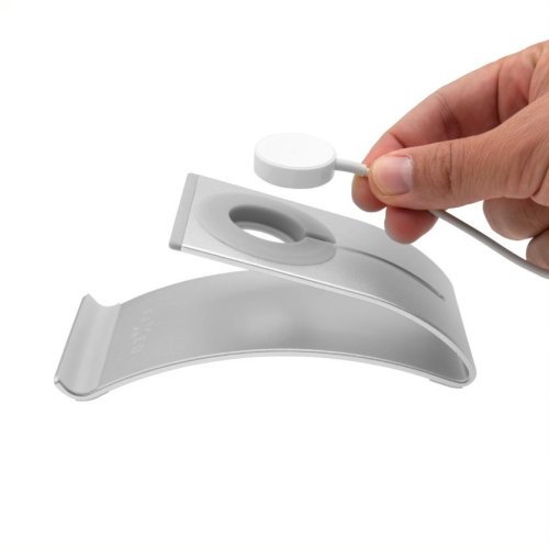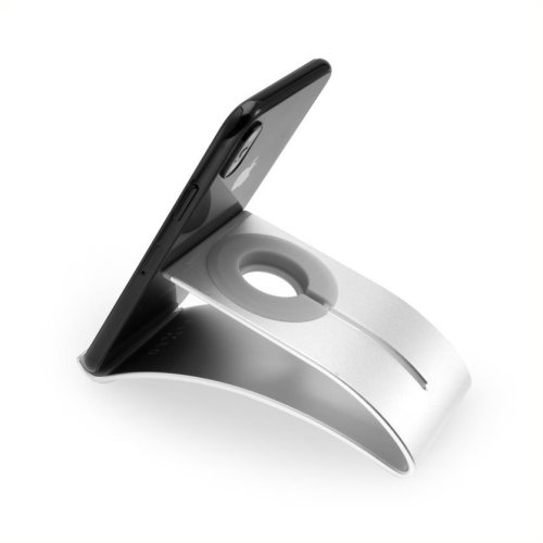 Přední část stojánku je určena pro opření mobilního telefonu, do zadní části lze vložit nabíječku pro Apple Watch a přeměnit tak stojánek do praktické nabíjecí stanice pro vaše hodinky. Pro ochranu před poškrábáním telefonu i hodinek je stojánek Frame Watch vybaven podložkami z jemného silikonu. Díky kompaktním rozměrům můžete vzít stojánek kamkoliv s sebou.