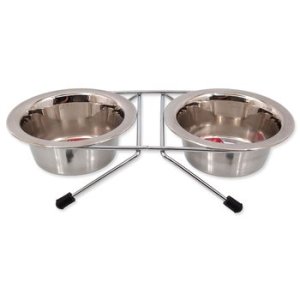 Stojánek s nerezovými miskami.