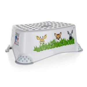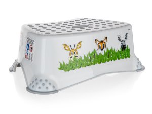Stolička / schůdek JUNGLE je možno použít jako sedátko nebo jako stupínek pro děti. Vhodné využití v koupelně či toaletě, kdy dětem usnadní přístup k těžce dostupným místům. Na spodní i vrchní straně stoličky je protiskluzová úprava, takže je stolička bezpečnější.