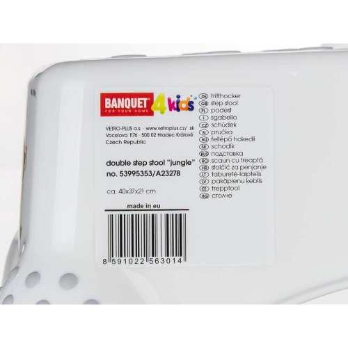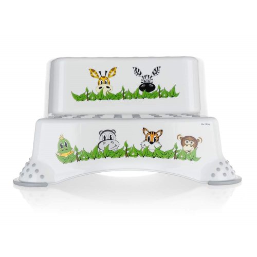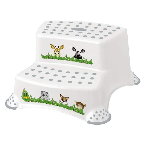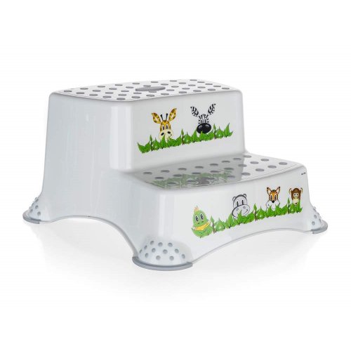 Stolička / dvojschůdek JUNGLE je možno použít jako sedátko nebo jako stupínek pro děti. Vhodné využití v koupelně či toaletě, kdy dětem usnadní přístup k těžce dostupným místům. Na spodní i vrchní straně stoličky je protiskluzová úprava, takže je stolička bezpečnější.