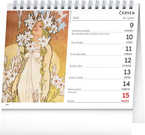 Kalendář 2025 stolní: Alfons Mucha, 16,5 × 13 cm