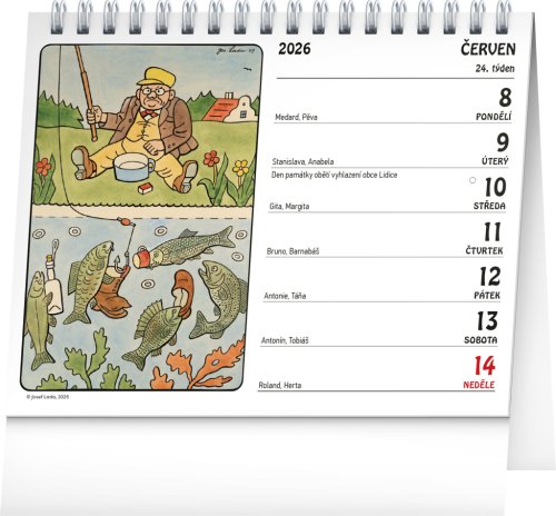 Týdenní stolní kalendář s lidovými ilustracemi Josefa Lady je praktickým pomocníkem na každý den. Kalendář obsahuje jeden obrázek na každý týden, kalendárium s českými jmény, svátky a památnými dny, fázemi měsíce a přehled na celý rok.