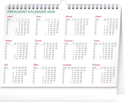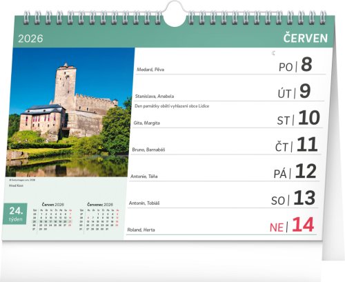 Kromě záběrů českých měst a krajiny se kalendář vyznačuje extra velkým písmem. Díky háčku ho můžete zavěsit na stěnu či ponechat na stole. Obsahuje české kalendárium se jmény, svátky a památnými dny, měsíční přehled a dostatek prostoru na poznámky.