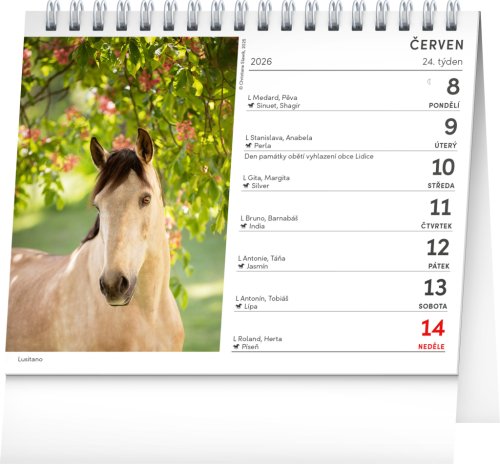 Oslavte svátek spolu se svým koňským parťákem - v tomto praktickém stolním kalendáři najdete jména koní na každý den. Kalendář zdobí hezké fotografie od Christiane Slawik a nechybí ani prostor na poznámky.