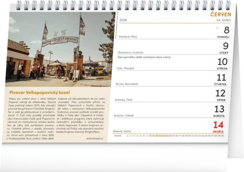 Máte rádi pivo a rádi objevujete zajímavé pivovary? Stolní kalendář plný tipů na cesty za zlatým mokem je tu právě pro vás. Dozvíte se, kde se u nás vaří ta nejznámější piva, ale i které malé pivovary byste měli při svých toulkách za pivem určitě navštívit. Týdenní kalendárium pro každého pivaře obsahuje také svátky, památné dny, měsíční fáze a přehled na celý rok 2026 a 2027.