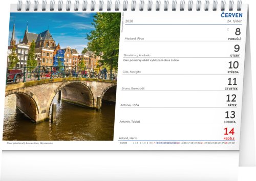 Praktický stolní kalendář s 53 fotografiemi těch nejkrásnějších a nejzajímavějších koutů celého světa. Procestujte svět křížem krážem a podívejte se na místa, která běžně nespatříte. Navštivte světové metropole i zapadlé vesničky, aniž byste museli utrácet za dovolenou. Stolní kalendář s českým kalendáriem obsahuje svátky a památné dny, měsíční fáze a přehled na celý rok 2026 a 2027.