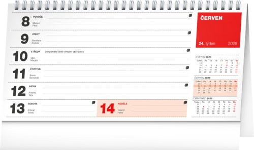 Stolní kalendář s řádkovým kalendáriem pro vaše všední i nevšední plány. Vše přehledně a na jednom místě. Dostatek místa na poznámky a praktičnost je u tohoto kalendáře naprostou samozřejmostí.