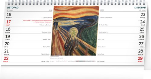 Ve 14-denním stolním kalendáři na vás čekají fotografie různých žánrů a motivů od květin přes chutná jídla až po malebná zátiší. Najdete zde i české kalendárium, svátky a památné dny i měsíční fáze. To vše v přehledném dvoutýdenním rozvržení.