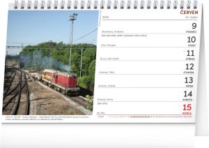 Jezdíte rádi vlakem, máte svou sbírku vláčků, nebo jste alespoň obdivovateli jejich krásy? Možná vám však chybí stolní kalendář s fotografiemi vlaků a železnice. České týdenní kalendárium s prostorem pro vaše poznámky obsahuje jména, svátky a další významné dny.