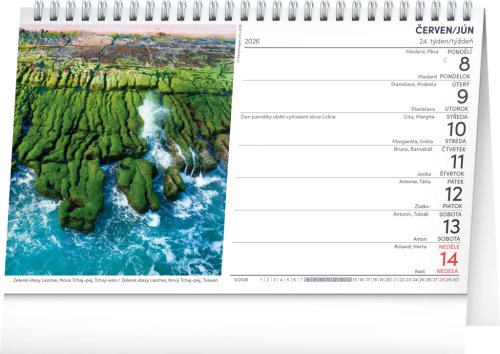 Pokochejte se fotografiemi klidné i rozbouřené vodní hladiny, běsnícími vodopády či ledovcovými jezery. Dvojjazyčný kalendář Voda zachycuje nejrozmanitější podoby vody po celém světe. Obsahuje česko-slovenské kalendárium, svátky a památné dny, měsíční fáze a seznam českých a slovenských jmen.