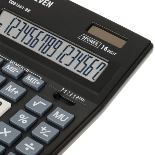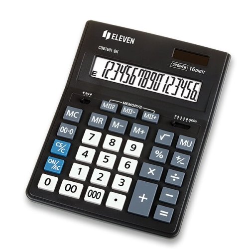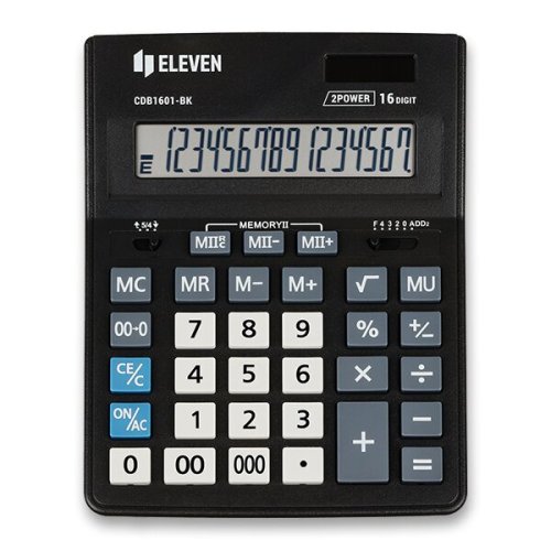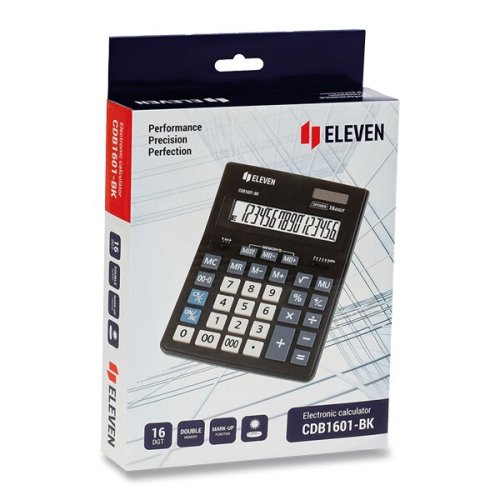 • 16místný displej, • 4 paměťové klávesy: MC, MR, M+, M-, • funkce pro operace s přirážkami, slevami [MU], • nastavení zaokrouhlení výpočtu, • výpočty s odmocninou [√], • dva registry paměti [MII], • změna znaménka před číslem [+/-], • vymazání posledního zadaného čísla na displeji [CE], • nastavení množství desetinných míst po desetinné čárce, • procenta [%], • rychlé zadání dvojité nuly [00], • rychlé zadání trojité nuly [000], • 204 x 155 x 32,6 mm, • 208 g
