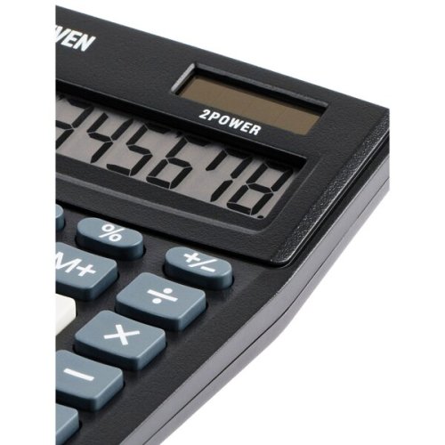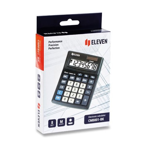 • 8místný displej, • 4 paměťové klávesy: MC, MR, M+, M-, • výpočty s odmocninou [√], • změna znaménka před číslem [+/-], • procenta [%], • 138 x 103 x 28,5 mm, • 93 g