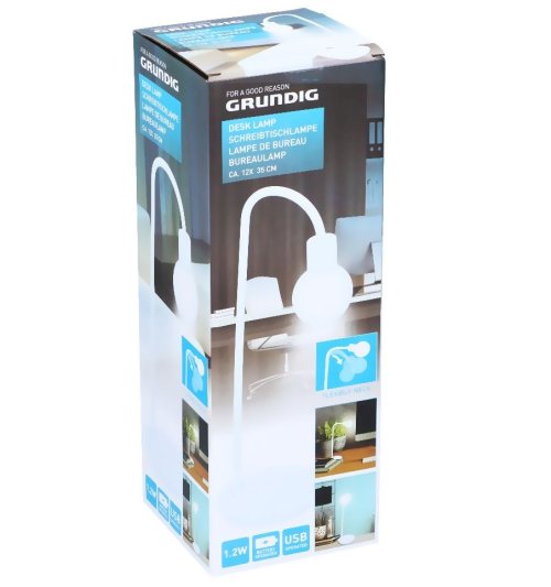 Energeticky účinná 1,2W stolní lampa od Grundig poskytuje jasné a příjemné světlo pro osvětlení vaší práce. Tato lampa je navíc vybavena flexibilním hrdlem, takže můžete světlo nasměrovat tam, kam potřebujete. Díky kompaktním rozměrům lze tuto stolní lampu také snadno vzít s sebou, takže je dobrou volbou na cesty. Ať už pracujete doma, v kanceláři nebo na cestách, stolní lampa Grundig s ohebným hrdlem je perfektní volbou pro jasné a pohodlné osvětlení pracoviště.Specifikace Stolní lampa GrundigRozměry: 12 x 35 CMflexibilní krkFunguje na 3 baterie AAA nebo USB kabel (nejsou součástí balení)