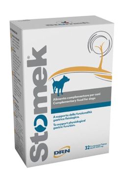 Doplňkové krmivo pro psy, pro podporu fyziologické funkce žaludku. Revoluční a inovativní podpora, která pomáhá proti nevolnosti, překyselení žaludku a symptomům gastritidy. NEVOLNOST A HYPERACIDITAZázvor a lékořice pomáhají proti nevolnosti a překyselení žaludku.ÚLEVAHeřmánek díky své spasmolytické aktivitě a opuncie, které vytvářejí bariérovou vrstvu v žaludku, pomáhají působit proti příznakům gastritidy.KOMPLETNÍ A DLOUHODOBÁ AKCE Stomek® poskytuje nejen okamžitou úlevu žaludku, ale také reguluje tvorbu kyseliny, čímž podporuje pravidelnou funkci žaludku. Složení:Maltodextriny, hydrolyzovaná živočišná bílkovina, rostlinné polyfenoly z hydrolyzované lignocelulózy, produkty získané zpracováním zeleniny (prášek Opuntia Ficus Indica 40 000 mg/kg), produkt získaný z druhu Lactobacillus, bohatý na bílkoviny ( L. rhamnosus SGL06 tindalizovaný, L. reuteri SGL01 tindalizovaný).Analytické složky:Surový protein 7,80%, surový tuk 6,10%, hrubý popel 9,30%, vláknina 26,00%.Aditiva na kg:Matricaria recutita es (heřmánek) 83 250 mg, práškový extrakt Glycyrrhiza glabra ( lékořice) 83 250 mg, zázvorová tinktura 63 270 mg, glycerol tributyrát (mikroenkapsulovaný) 4 442 mg. Jak používat:Psi 1 tableta denně na každých 10 kg hmotnosti.