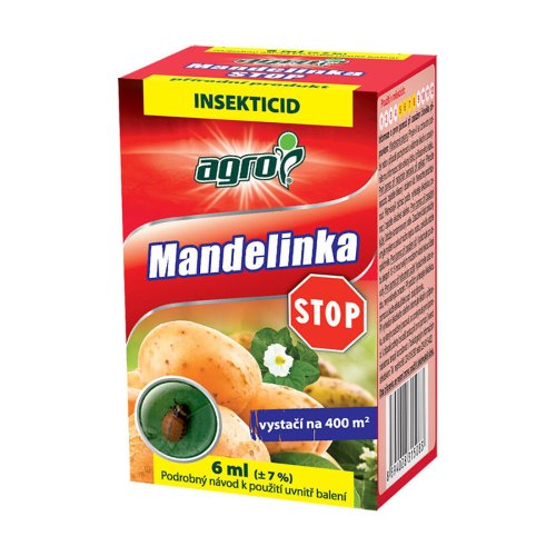 AGRO Mandelinka STOP je přírodní přípravek proti mandelince bramborové. Působí jako požerový a kontaktní insekticid. Je velmi šetrný k životnímu prostředí, zejména k člověku a teplokrevným živočichům. Aplikuje se v době max. líhnutí larev v intervalu po 7 dnech, maximálně 2 x.